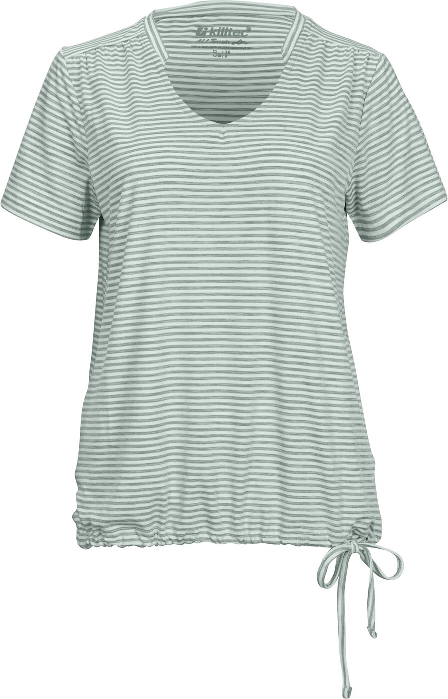 Das sportive, gestreifte T-Shirt aus feuchtigkeitstransportierendem, schnelltrocknendem Funktionsmaterial von killtec überzeugt durch seine leichte Qualität und einen angenehmen Tragekomfort. Der Saum lässt sich anhand der hübschen Kordelschleife verstellen.